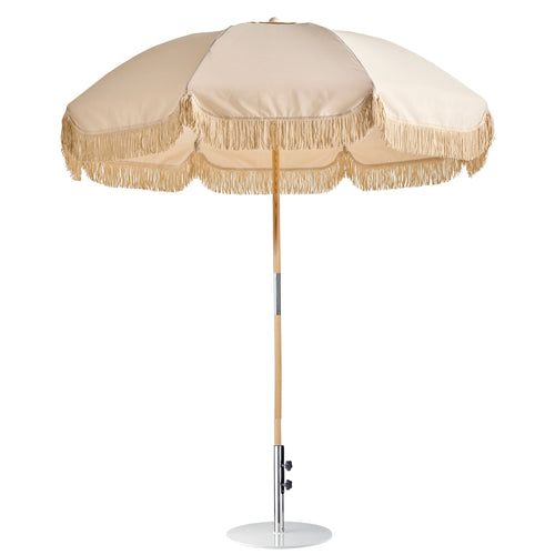Engineered with a sturdy 2-piece American ash timber pole and stainless steel hardware, the Jardin umbrella is built for longevity. The vented canopy enhances airflow, while the delicate fringing adds a touch of vintage charm. Whether for backyard lounging, poolside relaxation, or outdoor dining, this umbrella delivers reliable shade and timeless elegance for any occasion.