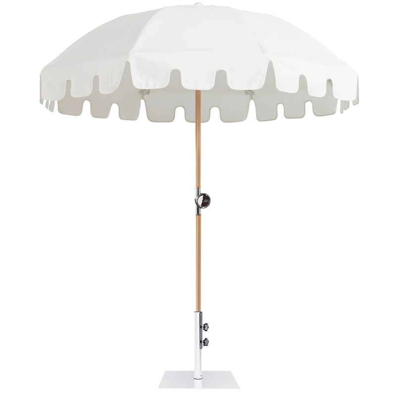 Basil Bangs Luxury Umbrellas feature premium European fabric, UPF50+ sun protection, and marine-grade components for lasting durability. With a solid timber pole, patented Basil Hinge for easy adjustments, and timeless design, they offer superior shade and style for any outdoor space.